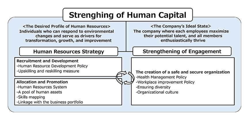 In order to make optimal management decisions quickly and flexibly amid drastic changes in the business environment, we aim to realize DE&I that encourages the active participation of diverse human resources. Regardless of external differences such as gender, age, and nationality, as well as internal differences such as values, we are working to create an environment in which diverse human resources can demonstrate their individuality and abilities.