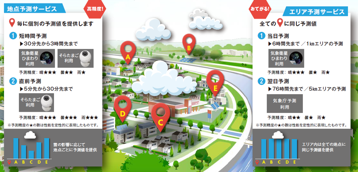 地点日射量予測 (そらたまご設置あり。設置地点ごとの予測値を提供) |